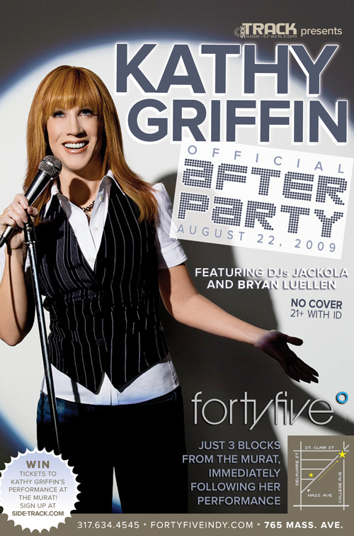 21+ with IDsideTrack Entertainment presents the official after party for Kathy Griffin when she visits Indy to perform at the Murat on August 22, 2009.